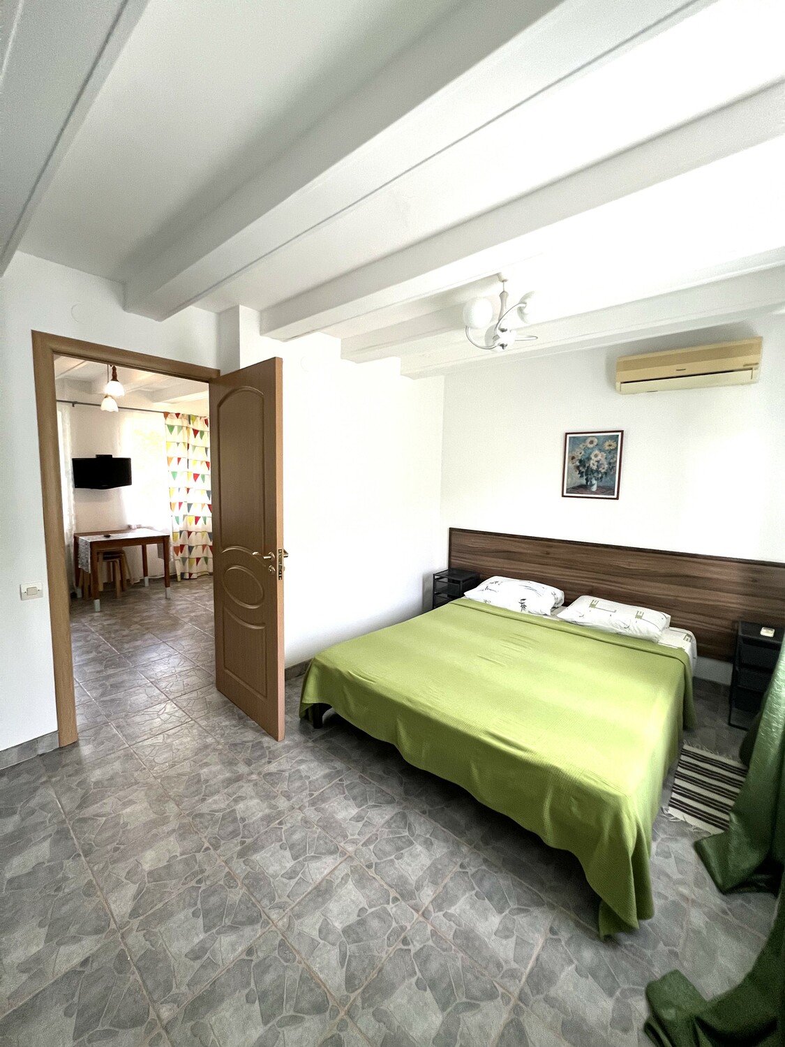 Спальни в мини-коттедже: 2 спальни с двухспальными кроватями и межкомнатными дверями ( на 1 и 2 этаже)